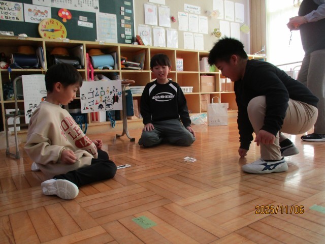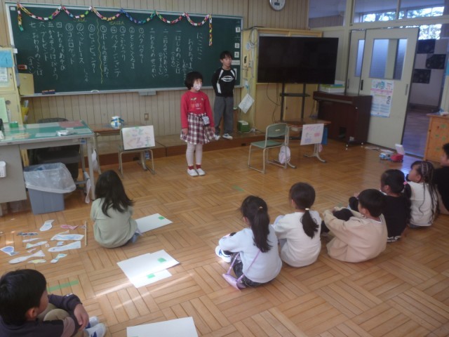 今日は、1年生に遊び方をていねいに説明しながら、1年生を楽しませようとがんばる姿が見られました。どの遊びも笑顔があふれ、1年生も「もう1回やりたい!」とにこにこ笑顔で喜んで参加していました。2年生は、1年生の気持ちを考えながら自分の役割を責任を持って行うことができ、大きく成長した姿を見せてくれました。