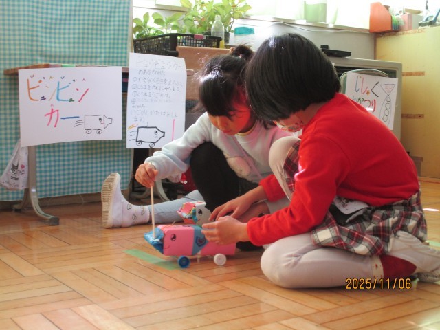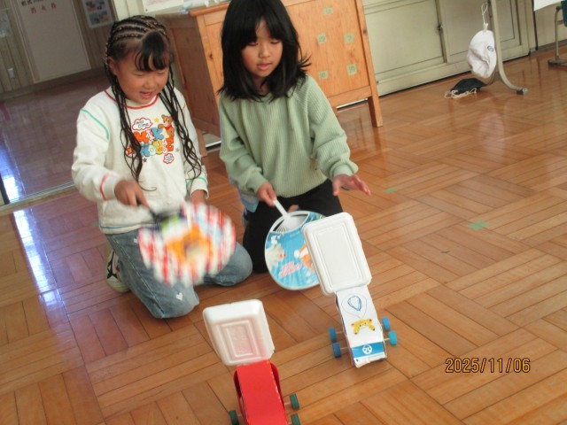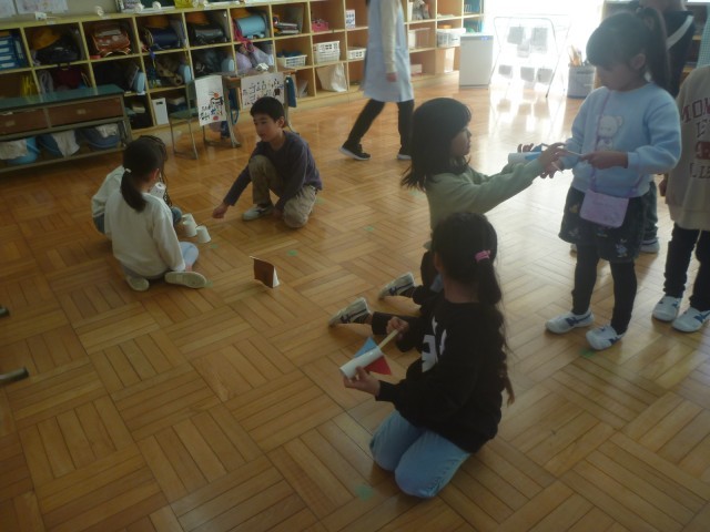 2年生「ニコレンジャー」の五人は、1年生を招待して「にこにこおもちゃまつり」を行いました。