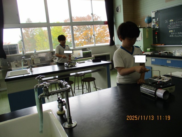 4年生の理科は、金ぞくの温度と体積の変化の実験を行いました。