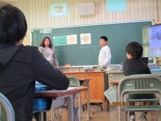 11月17日(月)5校時目に「研究授業」を4年算数の授業で行いました。
