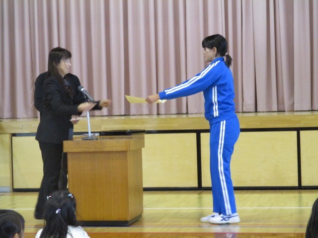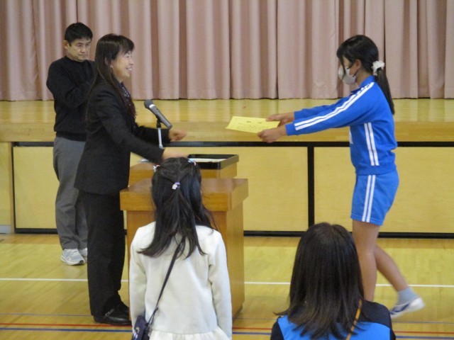 代表の友達が表彰されると自然に大きな拍手がわきおこり、みんな笑顔になりました。