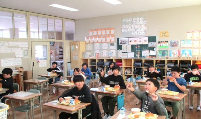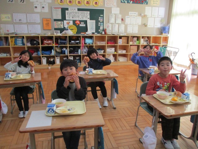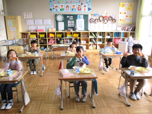 好きな組み合わせを楽しめる給食に、子どもたちは笑顔いっぱいでした。