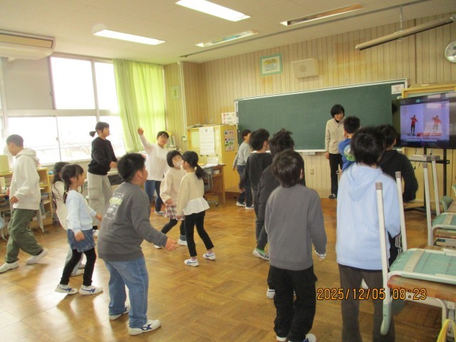 6年生を中心に、動画を見ながら、ダンスを行い体力作りを行いました。