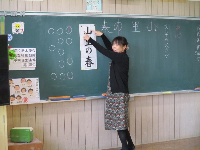 「中心に気を付けながら書く」 「山という字は長さに気を付けて書く」