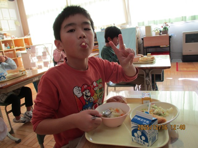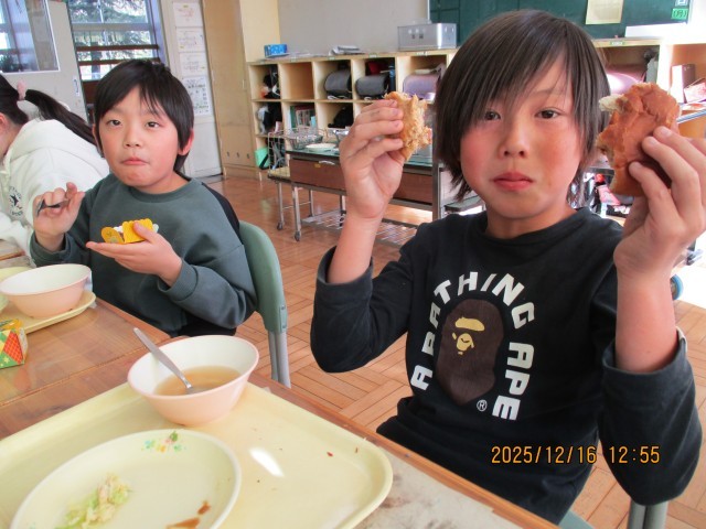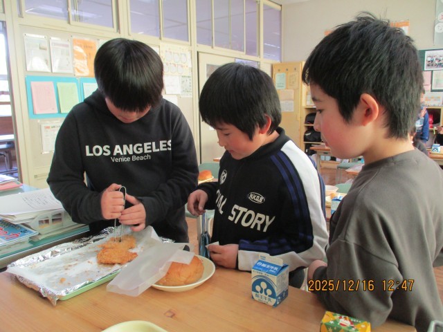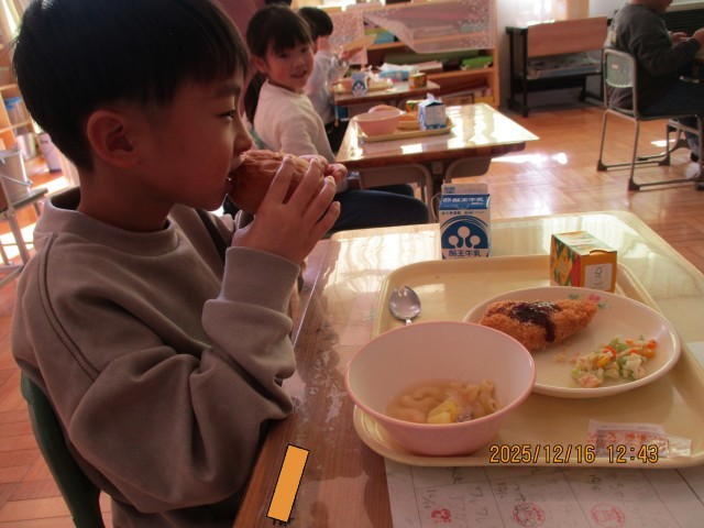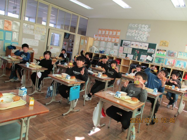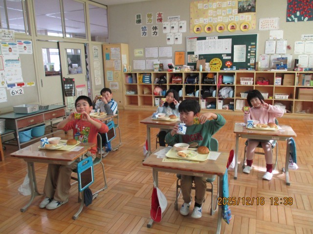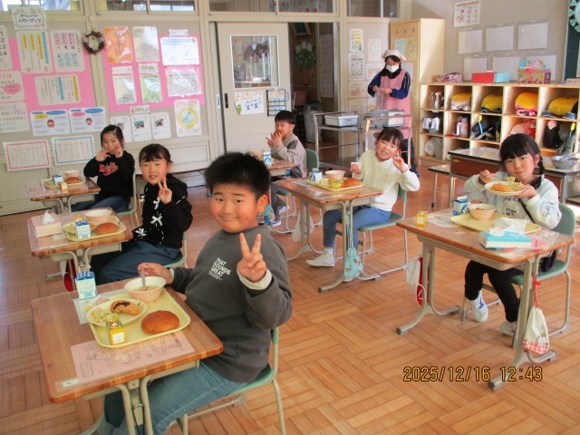 子どもたちは、友達と同じ献立を囲みながら、いつも以上に笑顔で会話を楽しみ、温かな雰囲気の中で給食の時間を過ごしていました。