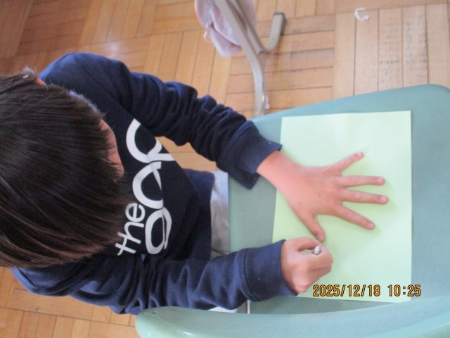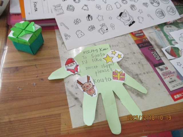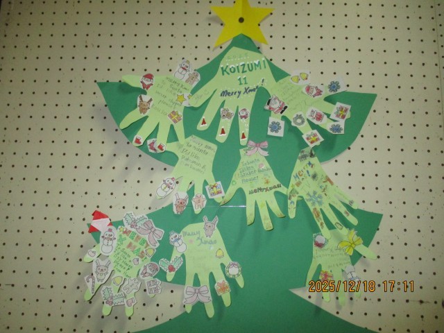 また、カードを自分の手に合わせて切り抜き、クリスマスらしい飾りをつけることで、外国語を通したコミュニケーションの大切さにも気付く学習となりました。