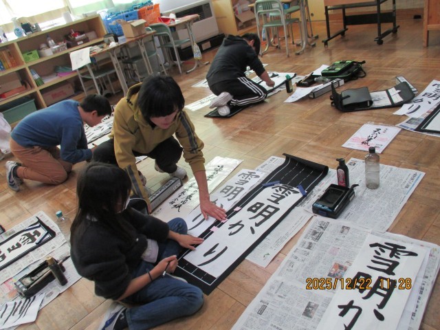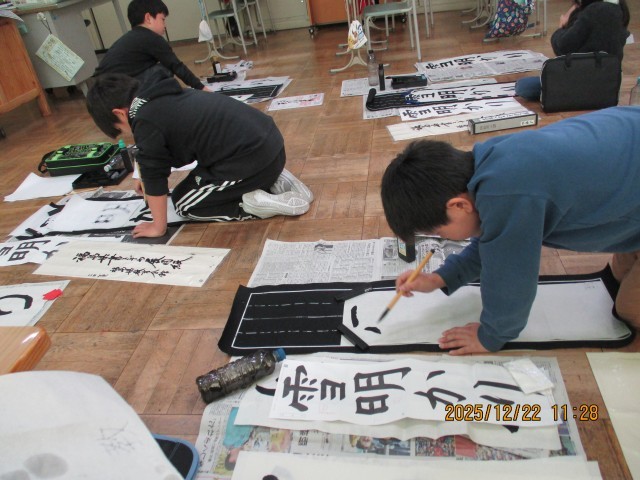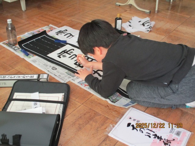 中心を意識して書くこと、漢字とひらがなのバランスを書き初め教室でお習いしたことを思い出しながら、集中して書いていました。