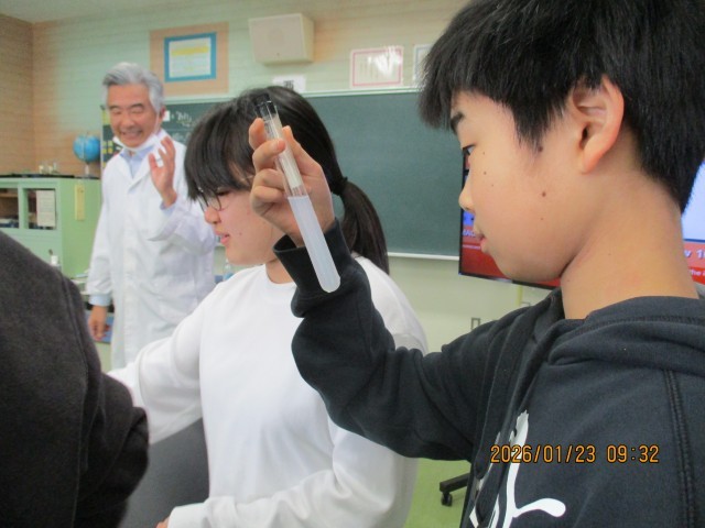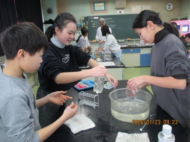 STの先生とのTTの授業で、安全に配慮しながら、実験を行い、実際に見て、感じて学んでいます。