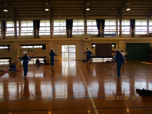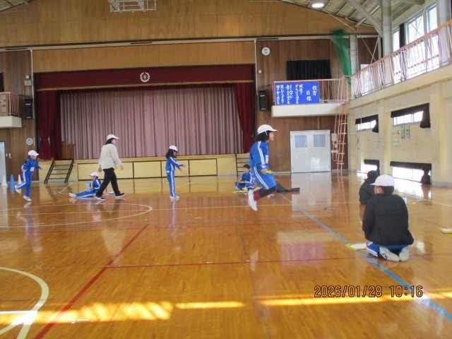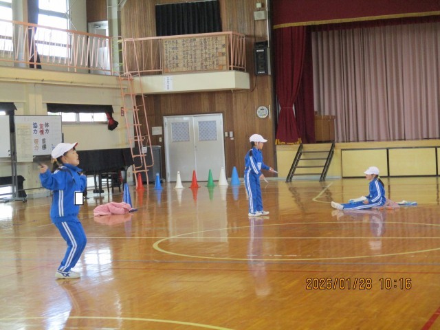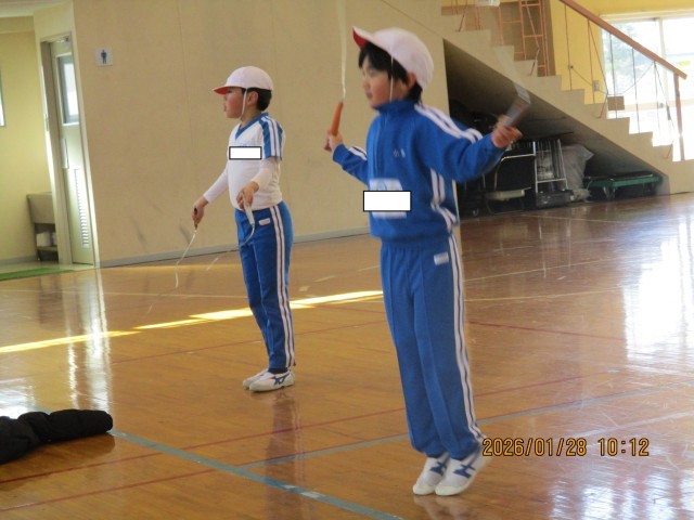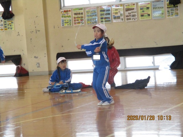 1・2年生の合同体育では、なわとびの種目別記録に取り組みました。