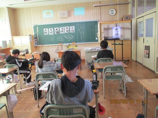 4年生の書写は、「大地」を毛筆で書いていました。