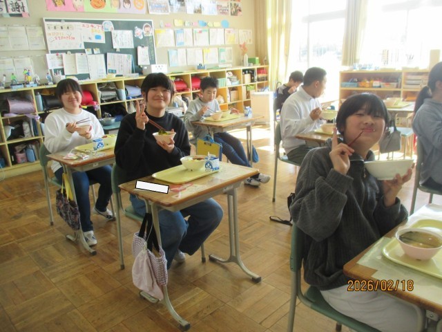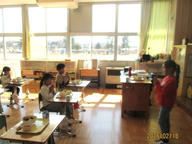 給食の時間には、健康委員会の児童からソースカツ丼に関する放送がありました。