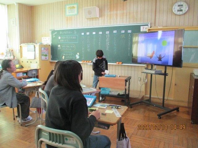 6年生のプログラミング学習は、「君もプログラマー」で自分の考えた物語やゲームをスクラッチで表し、作品の発表をしました。