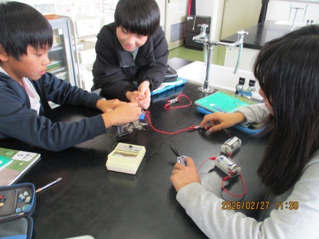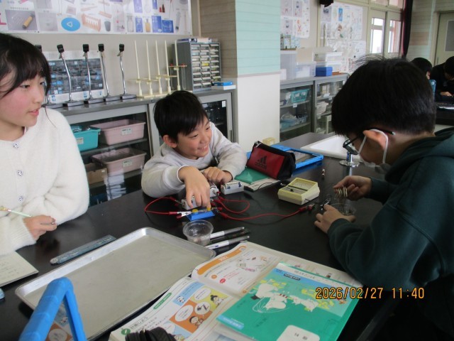 5年生の理科は、電池の数を増やす(電流大)と磁力は強くなる実験をしていました。