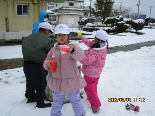 今日は、雪と身近にあるものを使って雪遊びを行いました。