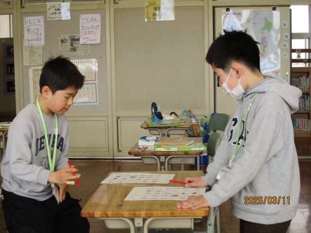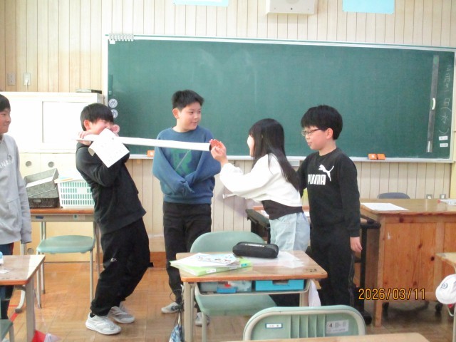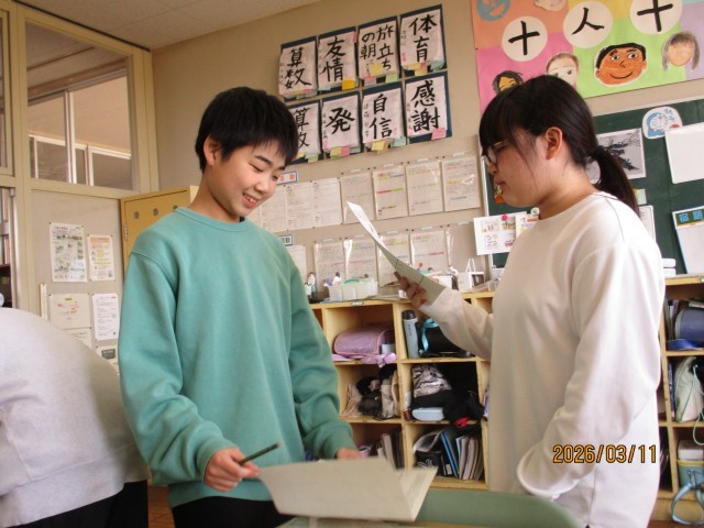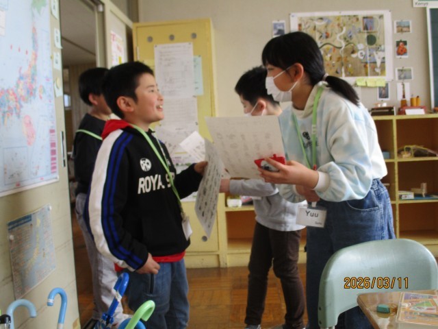 子どもたちは、AETの先生に感謝の気持ちを伝えるとともに、この1年の学習を振り返っていました。
