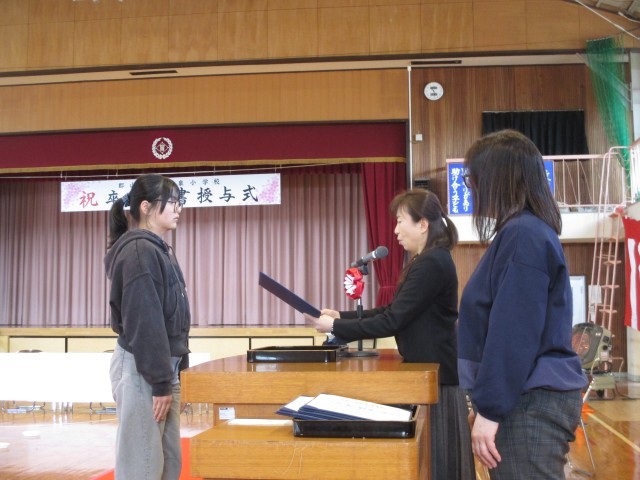 卒業生入場に始まり、卒業証書授与、旅立ちの言葉、卒業生退場まで通して行いました。