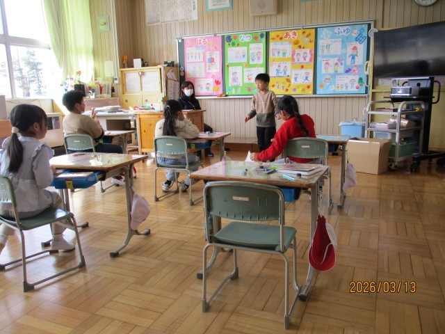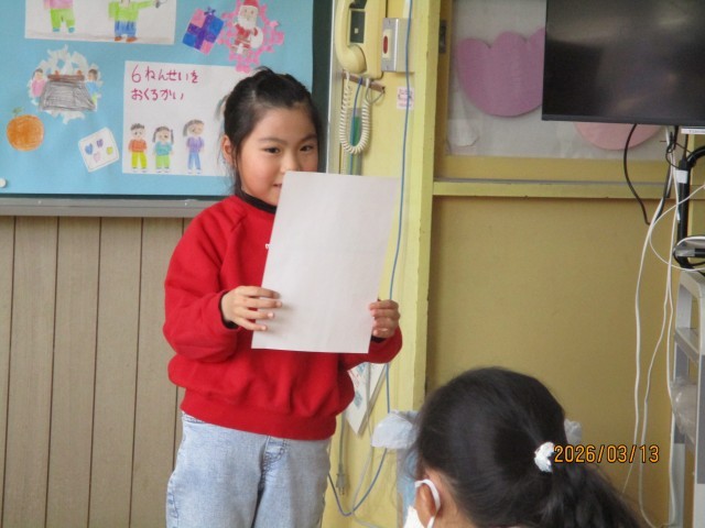 聞く側の子どもたちも、うなずきながら友達の話に耳を傾け、1年間の楽しかった出来事をみんなで振り返ることができました。