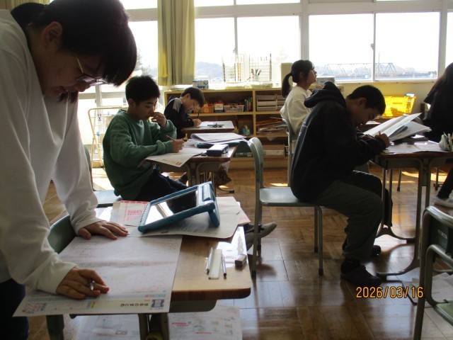 6年生の算数では、これまでに行ったテストやプリントの見直しを行いました。