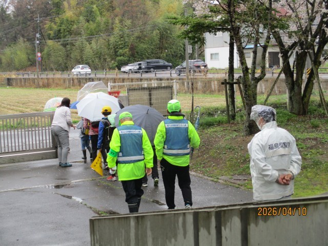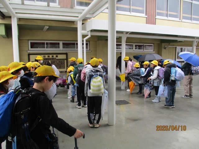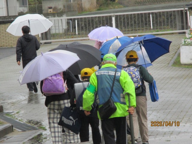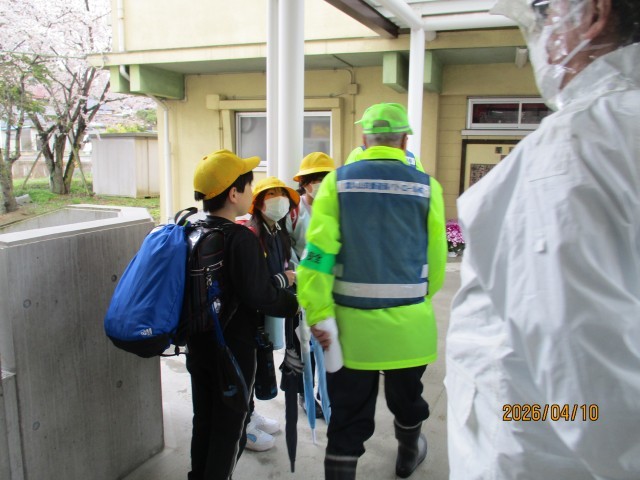 本日は、交番連協の皆様に見守っていただきながらの下校となりました。雨の中ではありましたが、子どもたちは朝の登校から自分の足でしっかり歩き、集団下校も安全に行うことができました。
