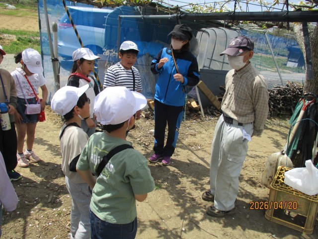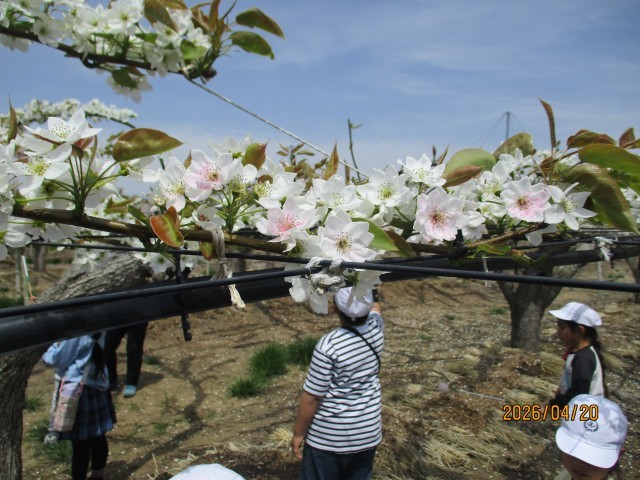 本日、1、2年生が学区内にある村上梨園さんで梨の授粉体験をしてきました。