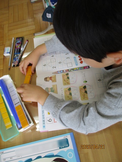 「あわせて〇になるかず」ドリルを利用して、学習していました。