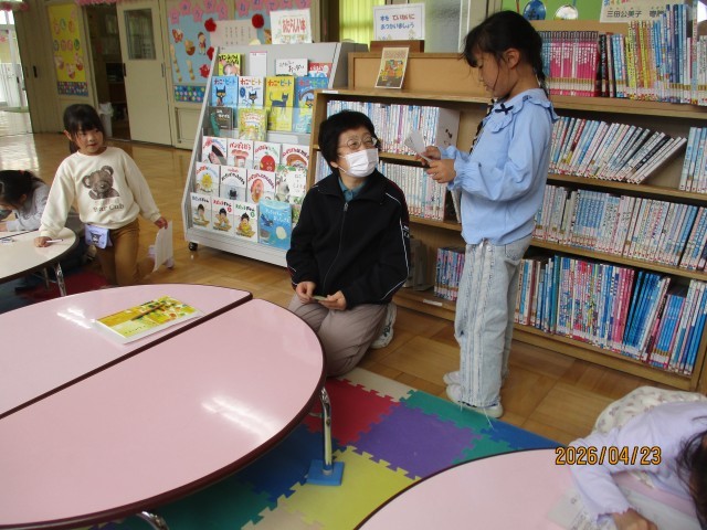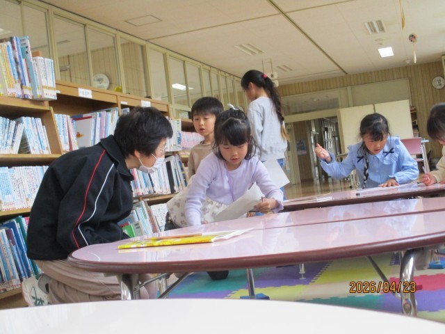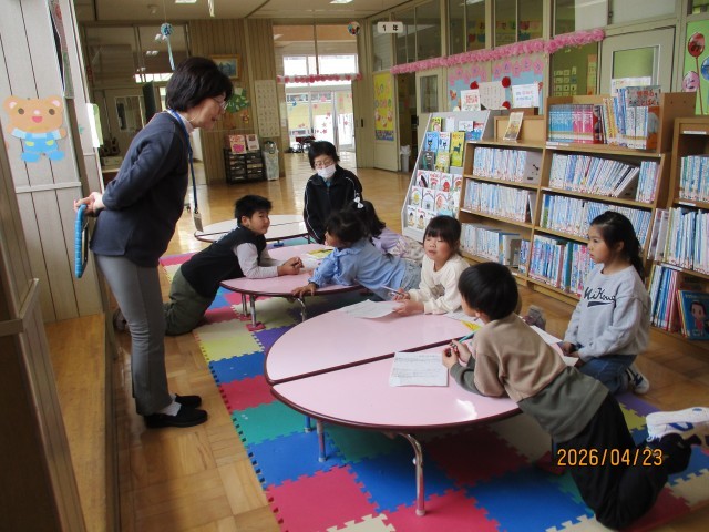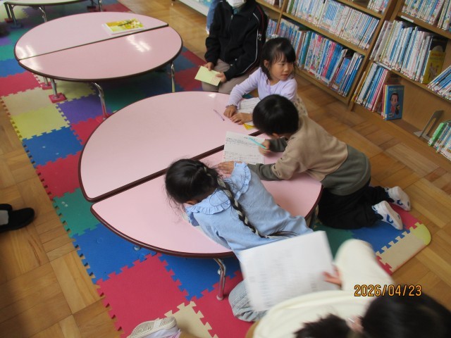 子どもたちは、「どんなことが書いてあるのかな」「どうしてこの順番に並んでいるのかな」と興味をもちながら話を聞いていました。
