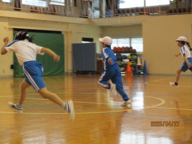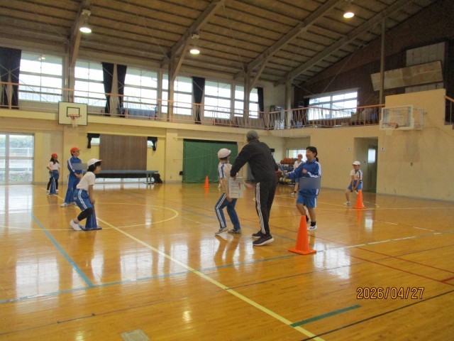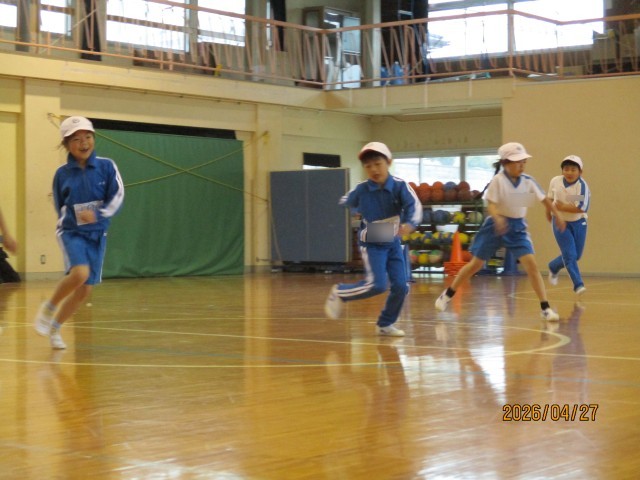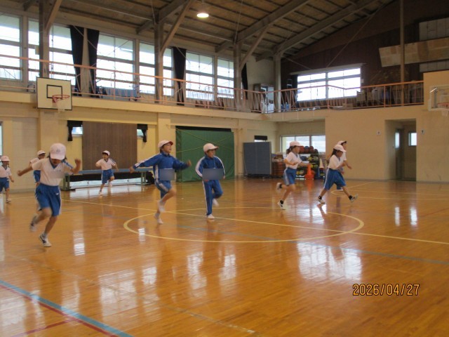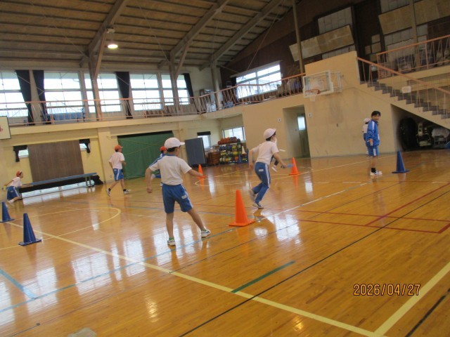 1・2年合同体育と3・4年合同体育は、天候のため体育館で実施しました。