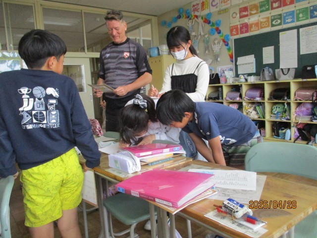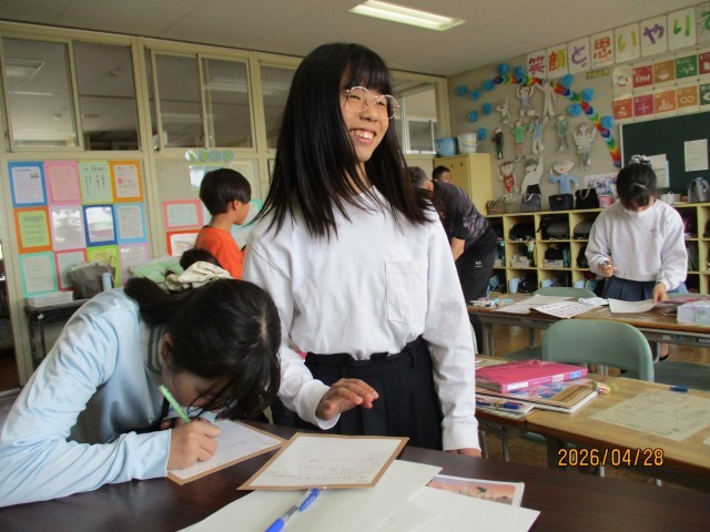コミュニケーション活動を中心に、日常生活で使う会話を繰り返し練習したり、AETの先生の発音をよく聞いてまねしたりすることで、子どもたちは楽しみながら英語で表現する力を高めていました。英語で伝わる喜びを感じる姿が多く見られました。