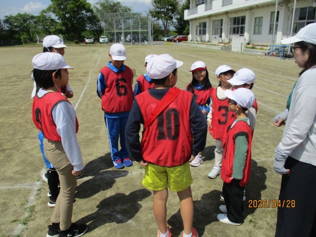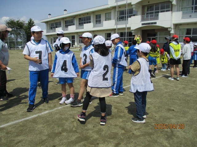 チームの発表と顔合わせを行った後、校庭に出て走順や担当区間の確認をしました。
