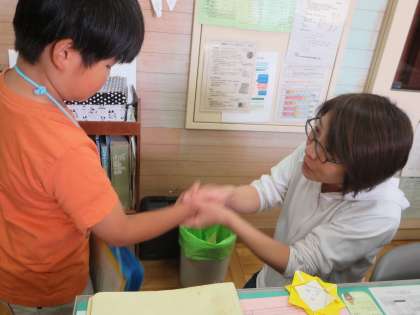 学校の中の部屋を訪れ、自己紹介をし、相手の名前をたずねる。そして握手をした後に、手作りのメダルを渡してくれたのでした。メダルには「なかよくしてね」などのかわいいメッセージがそえられていて思わずほっこりとしました。少しずつ、でも着実に成長してきていることが感じられたひとときでありました。