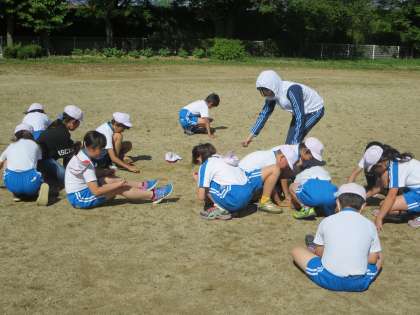 今日は「新体力テスト」を全校で行うので、朝の着替えに時間がかかっていた小泉っ子たち。でも着替えが済んだら、走る、水をあげるなど校庭ではいつもの自分のやるべきことに夢中な姿が見られました。草取りの輪が今朝も広がっていましたね。