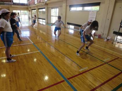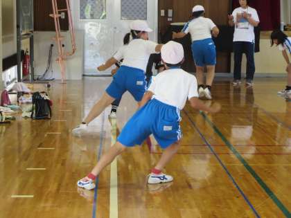 1メートル間隔の3本のラインを、順々に越すか踏むまでサイドステップする種目です。途中でステップがあやしくなったり、上半身や手がダンスのように踊ってしまったりしてしまうのは分かるような気もします。けっこう難しいのですよね。