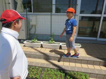 1年生が職員室前のプランターに注目。そして用務員の先生に質問していました。