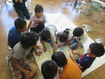 2年生はまちたんけんで発見したことや気づいたことを大地図に書き込んでいました。伝えたいけれどうまく書けないという子どももいます。