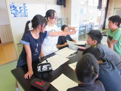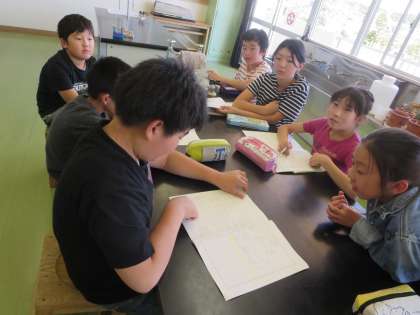 同じ時刻、理科室でも5、6年合同で話し合いをしていました。こちらものぞいてみましたが、ある班で「写さないでほしいんですけど」と取材拒否が…。