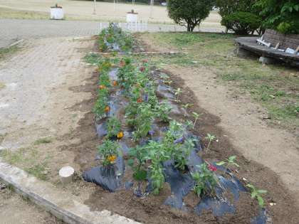 校庭東側の花だんに花が植えられました。この花がどのように植えられていったのか。ここに花いっぱい活動に取り組んできた本校の伝統(文化)があったと思います。