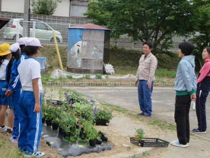 用務員の先生から教えていただきながら、花いっぱいの学校づくりを目指した学習のスタートです。