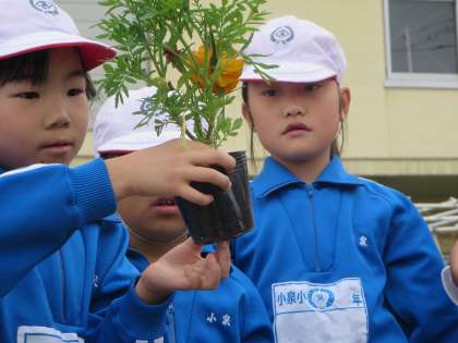 1 茎の下の部分をもち、ポット底面に空いている穴から指で押していく。