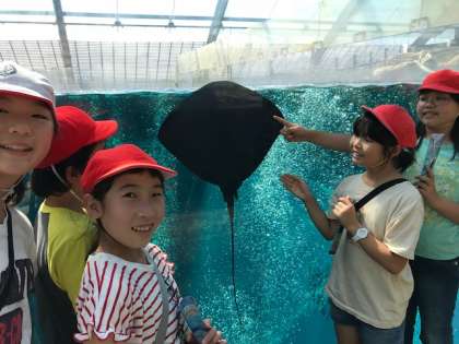 午後3時30分にアクアマリンの見学が終了。まもなく出発し、小泉小学校へ向かいます。午後5時前には下校の予定です。