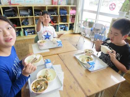 昨日、自然の家でバイキング食事を楽しんできた5年生に今週始めて食べる給食についてたずねたところ「やっぱり最高です!」「チョーおいしいです!」「納豆も一緒に食べたいです」という答えが返ってきました。今日もおいしい給食でしたね。ごちそうさまでした。