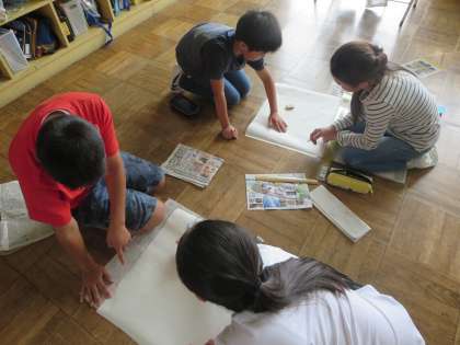 5、6年生たちは、宿泊学習で学んだことを振り返り、自分の言葉でまとめる学習を行っていました。しおりにメモしたことをもとに意見を交換し合い、活動の様子やその時のエピソードなどを文章にまとめていくようです。どのようなものに仕上がるのか楽しみですね。