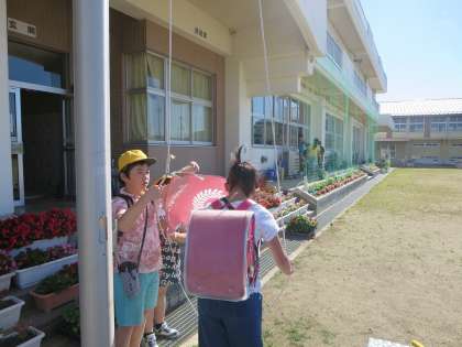 よい天気に支えられ、子どもたちの朝の活動が始まりました。