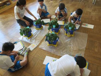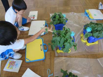 1年生が栽培しているアサガオの様子を作文にまとめていました。