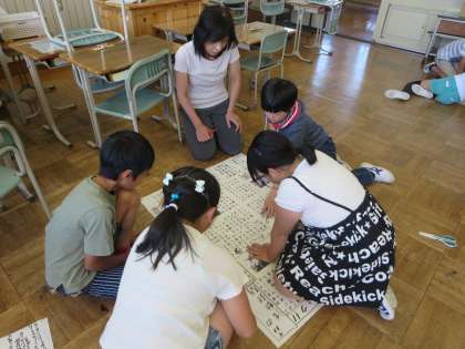 見たこと、聴いたこと、やってみたこと、そして感じ、考えたことを話し合って、文章で表現しています。