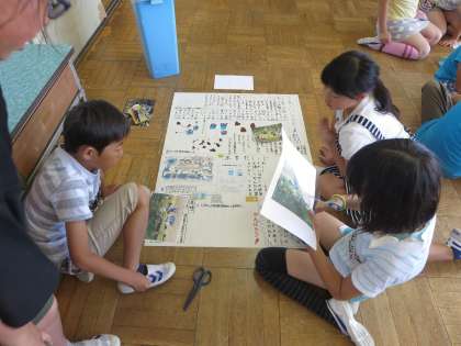 3、4年生たちが宿泊学習や見学学習で体験したことを壁新聞にまとめていました。
