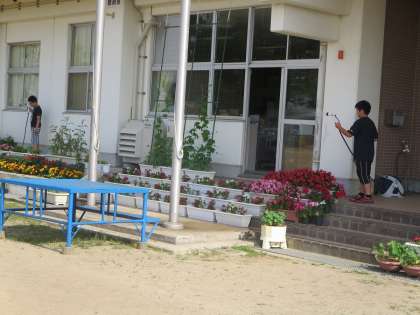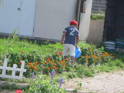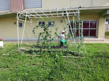 しっかりと花や野菜にかけてくれる小泉っ子。