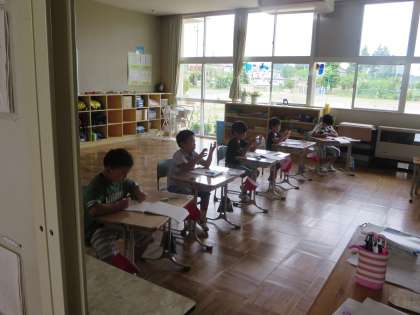 1年生が計算問題に取り組んでいました。その姿を見ていたとき、どの子もほぼ同時に指を使って考え始めたのです。この年齢だからこそ見ることができる、からだのあらゆる部分を使い、本気で問題に向き合っている姿が実にほほえましかったです。