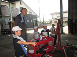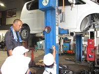 今回も、2班に分かれ、福原方面を探検しました。しかし、今回は2班とも別行動。自分達で行きたい場所を決め、タイムスケジュールを組み、質問もよ〜く考えました。まず、1班は、影山モータースへ。車の修理場所を見せてもらいました。大きな機械や作業道具に驚きの連続でした。また、JAFの車にも乗せてもらい、なかなか出来ない体験をしました。その後は公園で、子どもらしく遊んだのであります。この次の場所は・・・。