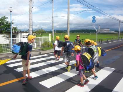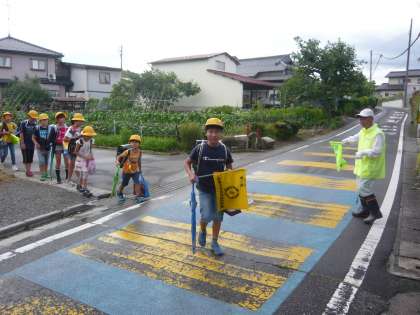 今日はきのうからの雨で道路がぬれていました。でも、小泉っ子はいつもと同じように元気に登校しています。母の会のお母さんやボランティアの方々にも元気にあいさつをしていました。