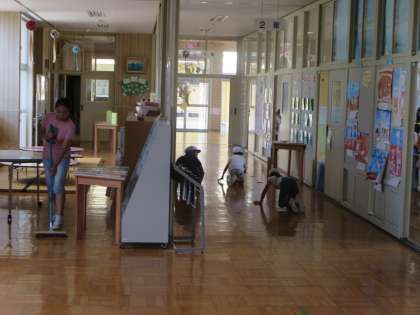 1学期も残り2週間。お掃除の時間には、いつもの場所だけでなく、ふだん手が行き届かないところも掃除していきました。少しでもきれいな校舎にしよう、そんな思いが姿に表れていましたね。